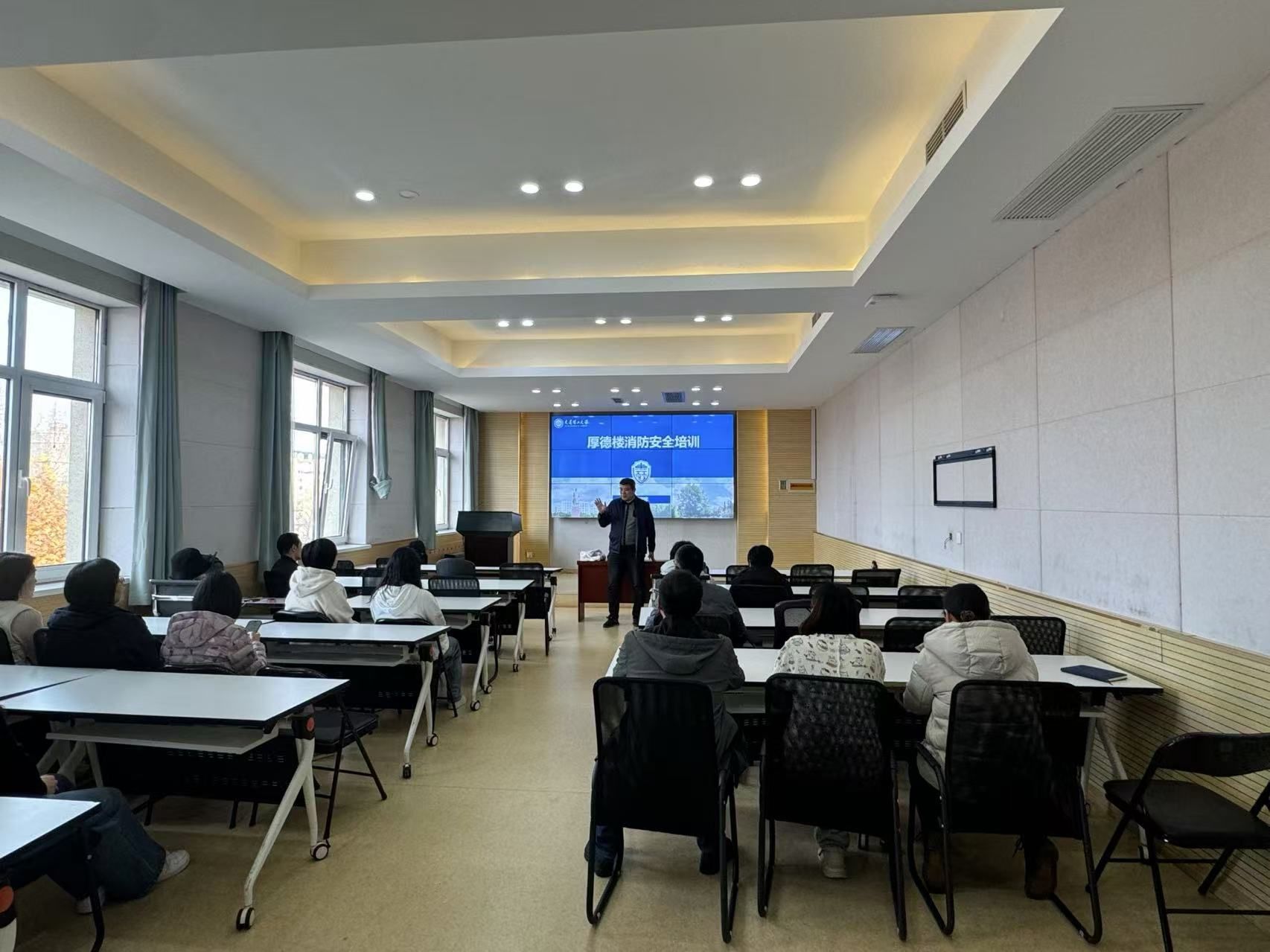 活动伊始,葛老师围绕“一防、二救、三跑”的核心理念,深入浅出地讲解了消防安全的重要性和具体应对措施。他强调,预防火灾是首要任务,要求大家在日常生活中时刻保持警惕,注意用电、用火安全,避免火灾事故的发生。同时,他也详细介绍了火灾发生后的自救与互救技巧,以及如何在火场中迅速、有序地疏散逃生。在讲座中,葛老师还特别对厚德楼的消防设施情况进行了详细介绍,包括消火栓、灭火器等设备的分布位置和使用方法。他亲自示范了消火栓和灭火器的使用步骤,并强调了操作过程中的注意事项和关键点。