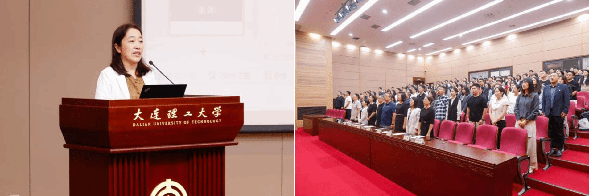 在一片热烈的掌声中,仪式进入了一个温馨而庄重的环节——学院党政领导、教师代表为新生佩戴校徽,由此见证2025级新生成为大连理工大学大家庭中的一员。
