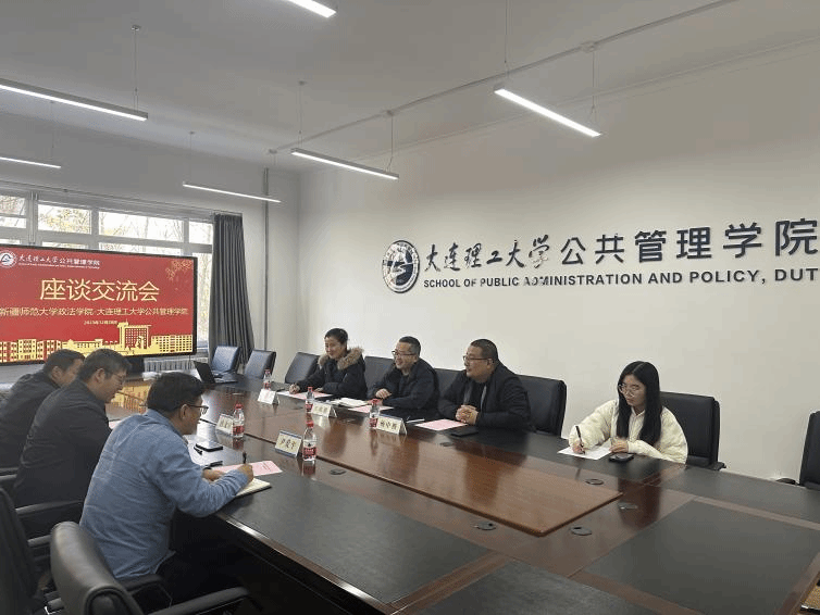 随后,双方分别介绍各自学院的基本概况。王欢明从学院专业设置情况、师资力量、专业实力、研究方向等方面介绍了大连理工大学公共管理学院的基本情况;唐文睿介绍了新疆师范大学政法学院的发展历史及其多学科发展的特点,表明学院各一级学科的综合交叉点是边疆治理,未来将在此方向上重点发力。双方就如何调动教师在教学领域上的积极性开展经验分享,并经讨论达成共识,认为可以在教学研究、课题申报、教师兼职、短期访学等方面建立合作关系。最后,双方初步商榷和拟定明年的交流安排。