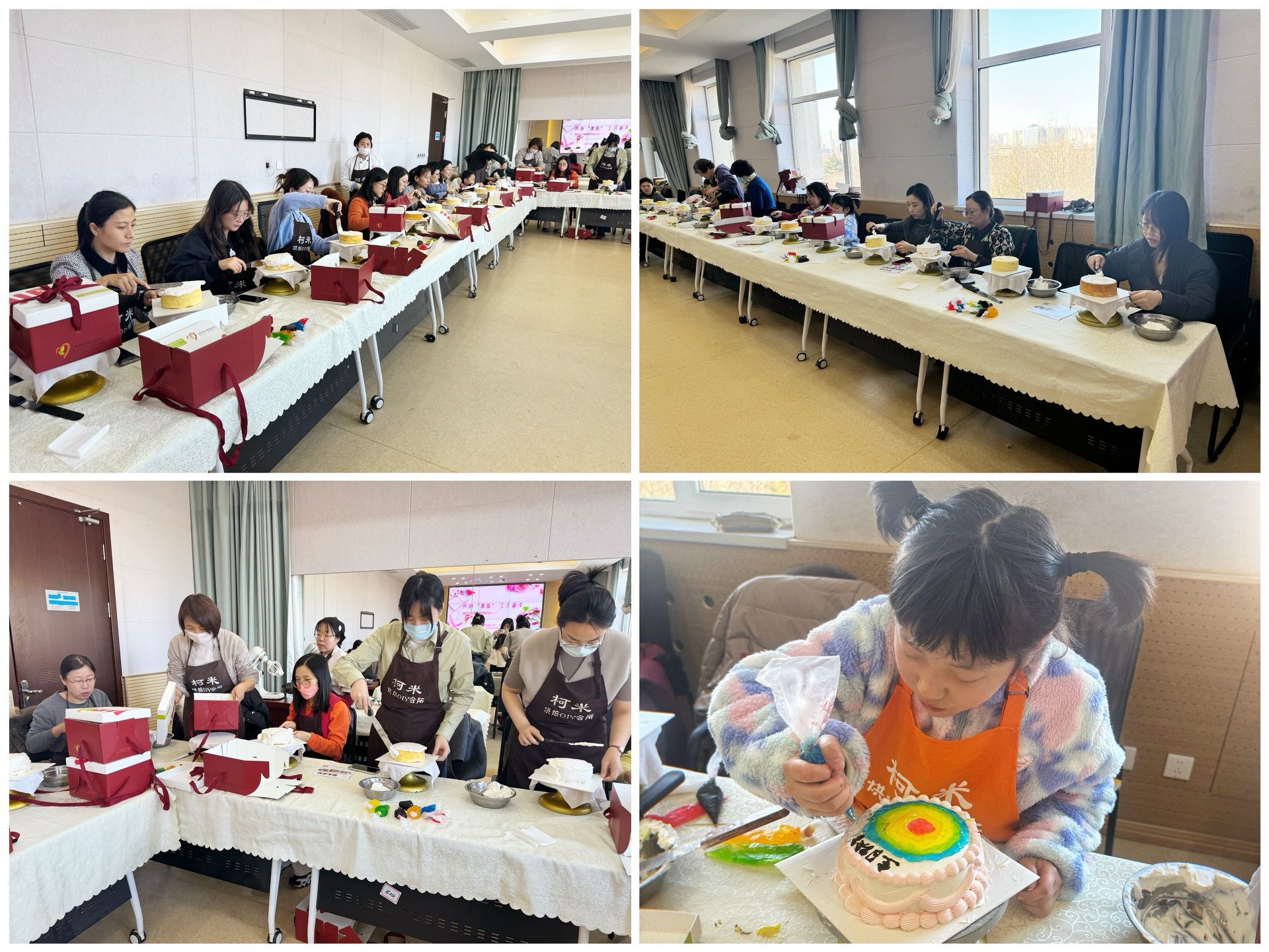 活动特别邀请了专业蛋糕师进行现场讲解示范与指导,活动伊始,制作现场已经进行温馨布置,蛋糕师耐心讲解蛋糕操作步骤,女教职工及小朋友亲自动手参与装饰鲜奶油,将蛋糕做出自己喜欢的多变造型。各单位女教工们各施其能,大展身手,用创意制作蛋糕造型,分享幸福的喜悦心情。