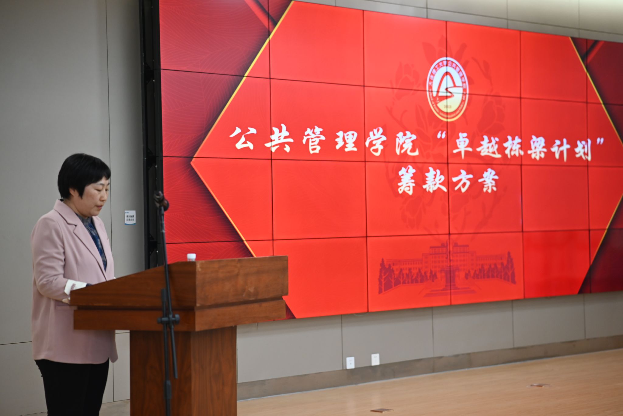 学院党委副书记兼副院长陈家晶宣读《公共管理学院“卓越栋梁计划”筹款方案》,号召校友积极参与学院人才培养工作。