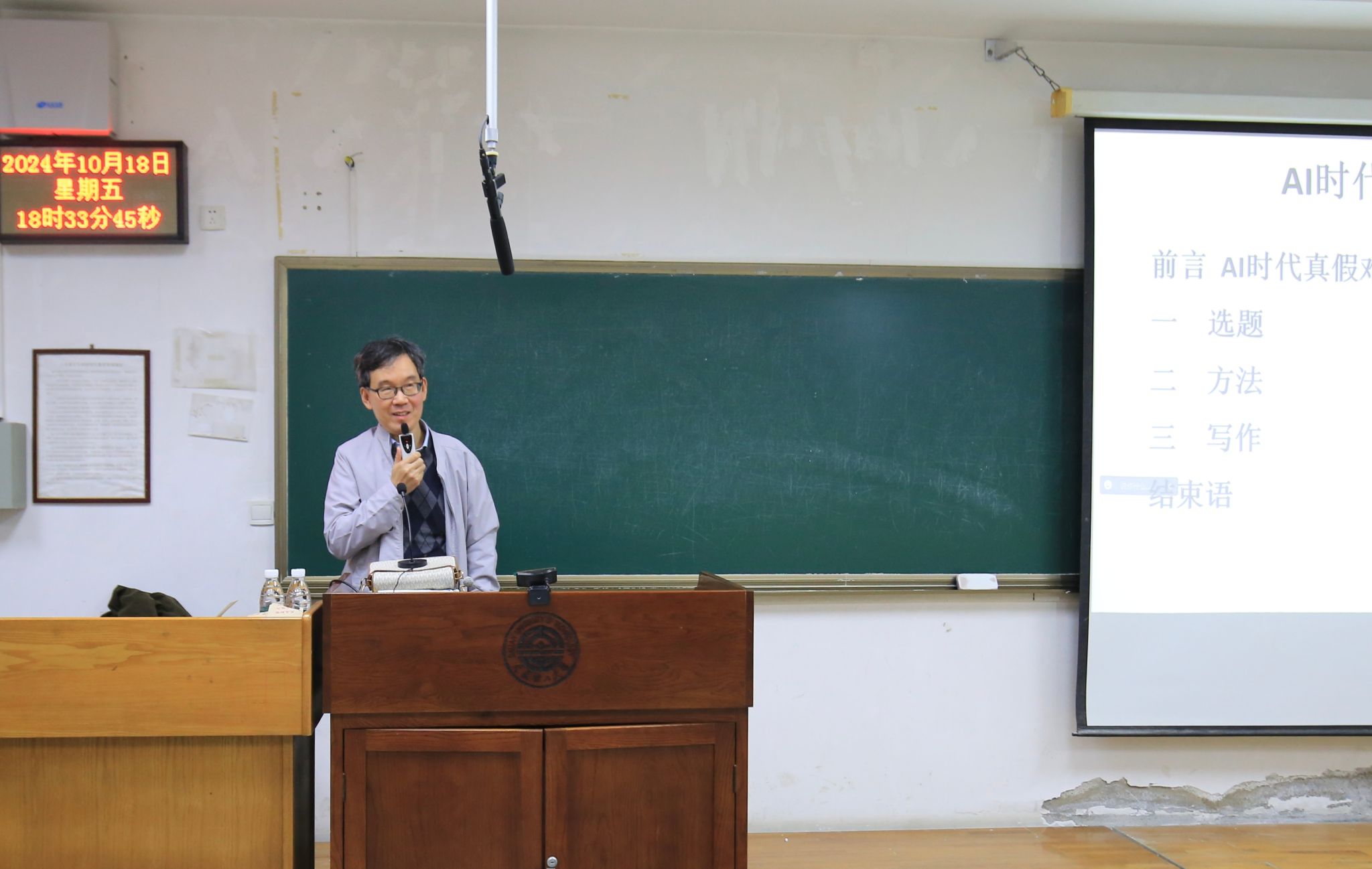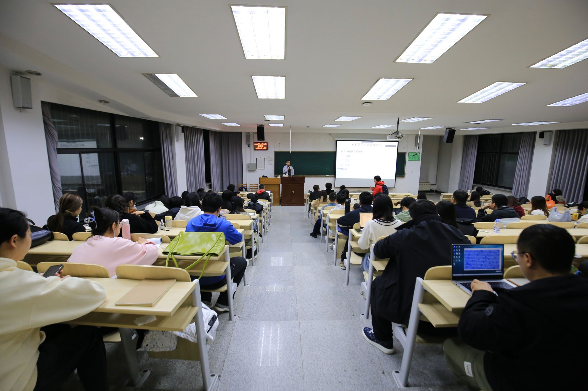 首先李连江教授以一段AI合成视频和图片为例,指出AI时代背景下未来社会结构和社会形态将发生的重大变革以及面临的挑战和机遇;接下来,李连江教授回到AI时代公共行政研究本质,从选题、方法、写作三个方面展开探讨,深入分析定性研究和定量研究两大研究方法的要点及常见错误;最后,李连江教授引用逻辑学详细阐释了AI赋能公共管理的基本关系,列举了诸多环环相扣的经典案例,以“望远镜”和“显微镜”的辩证关系,生动阐释了论文撰写的趣味所在,呼吁同学们在实践创新和文献学习中不断提升个人学术能力。