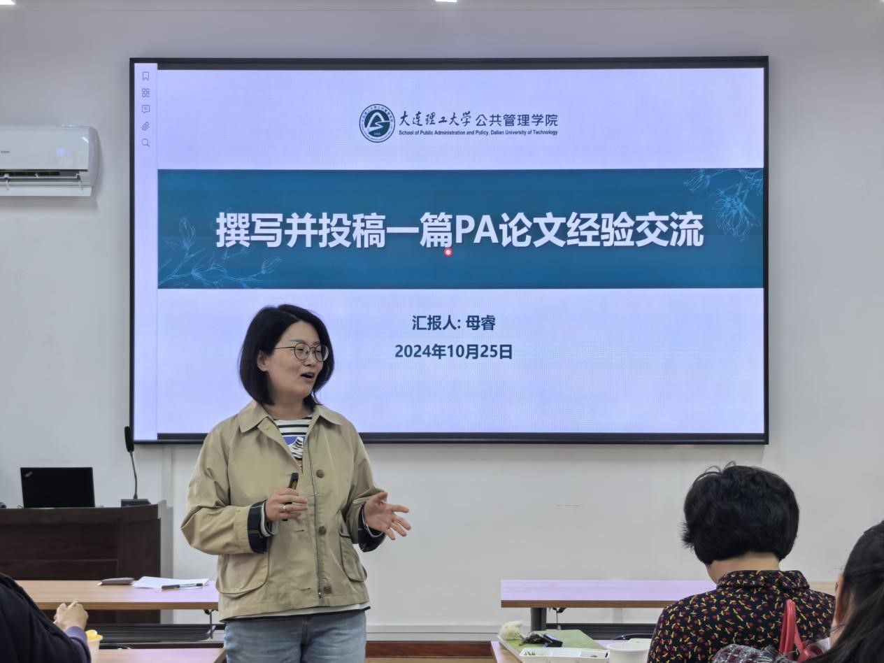 2024 年 10 月 25 日中午,公共管理学院于厚德楼 302 会议室成功举办第六期科研沙龙活动。此次活动由公共管理学院副院长刘毅教授主持,学院母睿教授带来了题为 “撰写并投稿一篇 PA 论文经验交流” 的精彩分享,学院十余名教师踊跃参与。