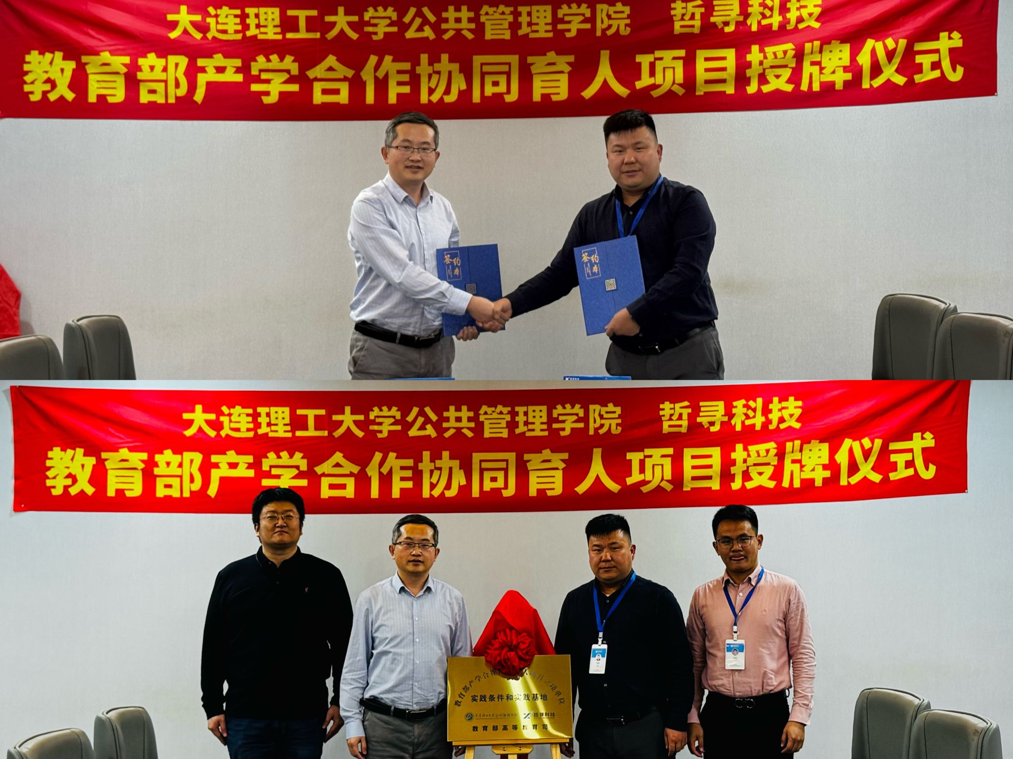 在交流过程中,双方以合作立项的教育部产学合作协同育人项目为切入点,围绕校企合作展开了深入讨论,并在多个方面达成共识。在科研合作、人才培养、公共管理教学软件实践与应用方面达成进一步深入合作意向,并举行大连理工大学公共管理学院-哲寻科技“教育部产学合作协同育人项目”揭牌仪式,达成校企合作,为大连理工大学公共事业管理专业高质量本科实验教学数智化发展奠定了坚实的基础。
