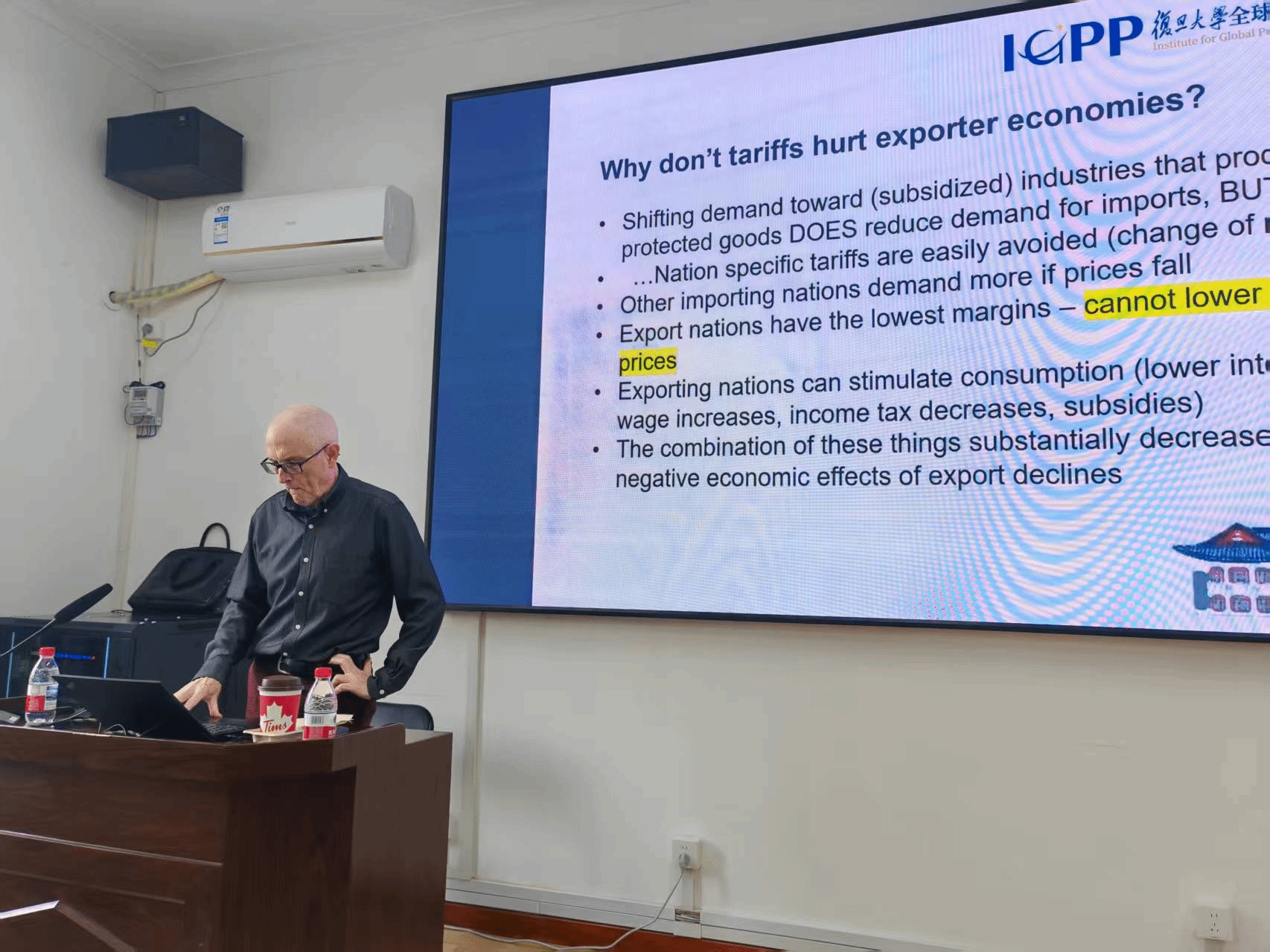 讲座伊始,Robbins教授系统介绍了关税与财政政策的基础知识,分析了关税作为政府收入来源和产业保护工具对经济与产业的影响,梳理了全球关税的历史发展脉络及法律机制,并就特朗普政府“两阶段”的关税政策进行了深入的剖析。