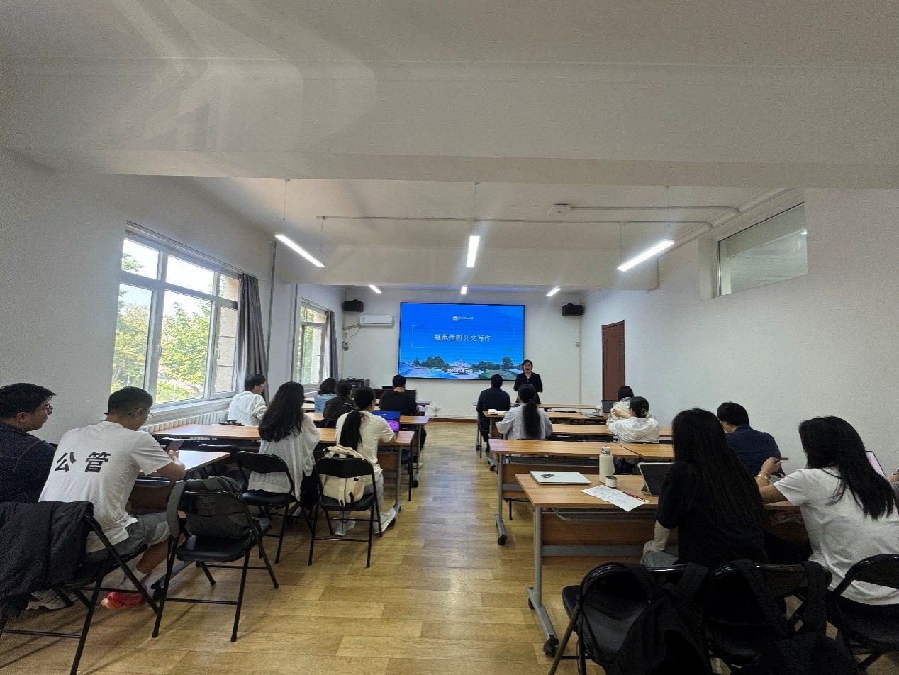 为深化深入贯彻中央八项规定精神学习教育成效,全面提升学院师生公文写作能力与机关工作人员综合素养,5月28日下午,公共管理学院在厚德楼302会议室举办《规范性的公文写作》专题培训。此次培训特邀学校党政办公室副主任龙海波老师担任主讲,学院机关全体成员及学生积极参与,讲座由学院党委副书记、副院长陈家晶主持。