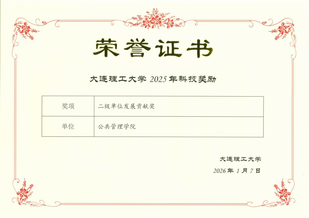 2025年1月7日,学校召开2025年度科技奖励大会。会上,公共管理学院荣获二级单位发展贡献奖,此次全校共有10家单位获此殊荣。