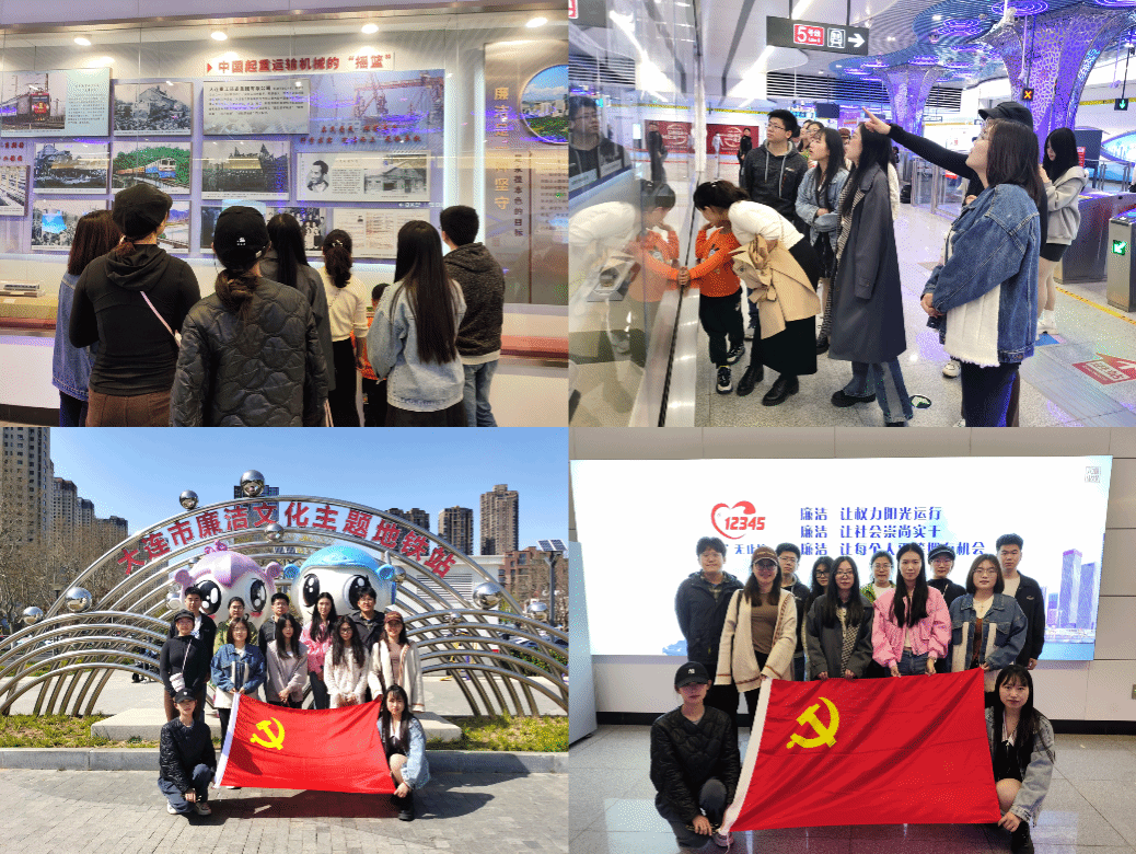 为扎实推进党纪学习教育,深刻落实“一融双高”工作部署,打造服务东北振兴的“党建+科研”型党支部,在建校75周年之际,公共管理学院硕士生第二师生纵向党支部聚焦提升主题党日“三度”,于4月20日赴大连市廉洁文化主题地铁站、甘井子区岔鞍村参观调研,开展“清风连海韵,卓越向一流”主题党日活动。