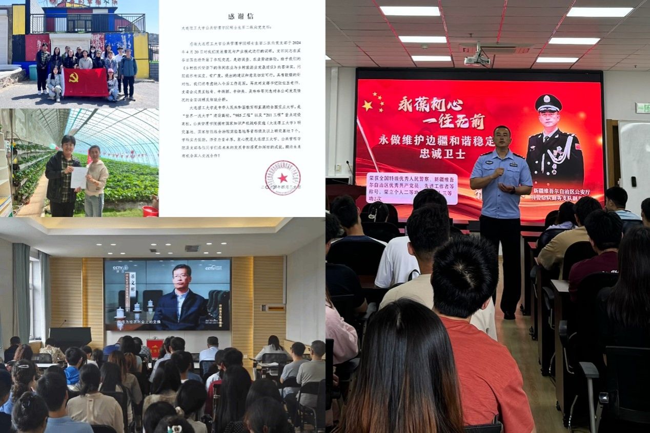 学院充分发挥党建引领作用,积极探索党建共建新模式,与地方政府、企事业单位、社区等建立广泛的党建联建关系,共同开展党纪学习教育活动。学院硕士生党支部深入大连周边农场调研产业模式,并将调研成果整理形成发展建议递交农场负责人,被农场采纳并收到感谢信,用实际行动为新时代辽宁全面振兴积蓄动能。学院党委与能动学院党委合作,邀请MPA在校生—全国特级优秀人民警察张晨阳开展讲座,激励广大学生党员学习先进,感悟榜样力量。