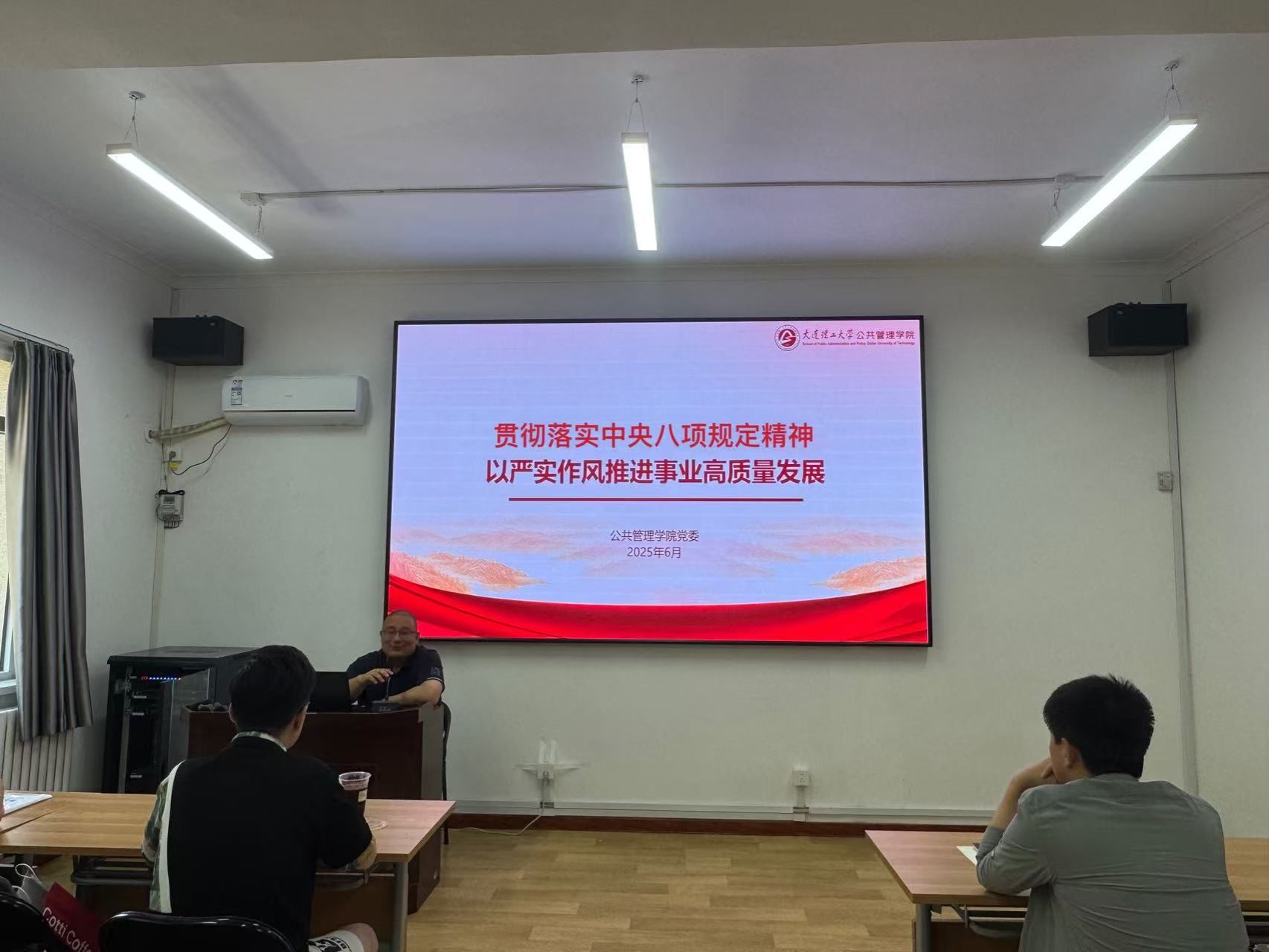 6月5日,芒种时节,上午9点,公共管理学院党委书记杨中楷在厚德楼302会议室,为学院全体学生党员带来了一场主题为《贯彻落实中央八项规定精神 以严实作风推进事业高质量发展》的专题党课。此次党课旨在进一步加强党员作风建设,提升党员对中央八项规定精神的认识,推动学院各项事业高质量发展。
